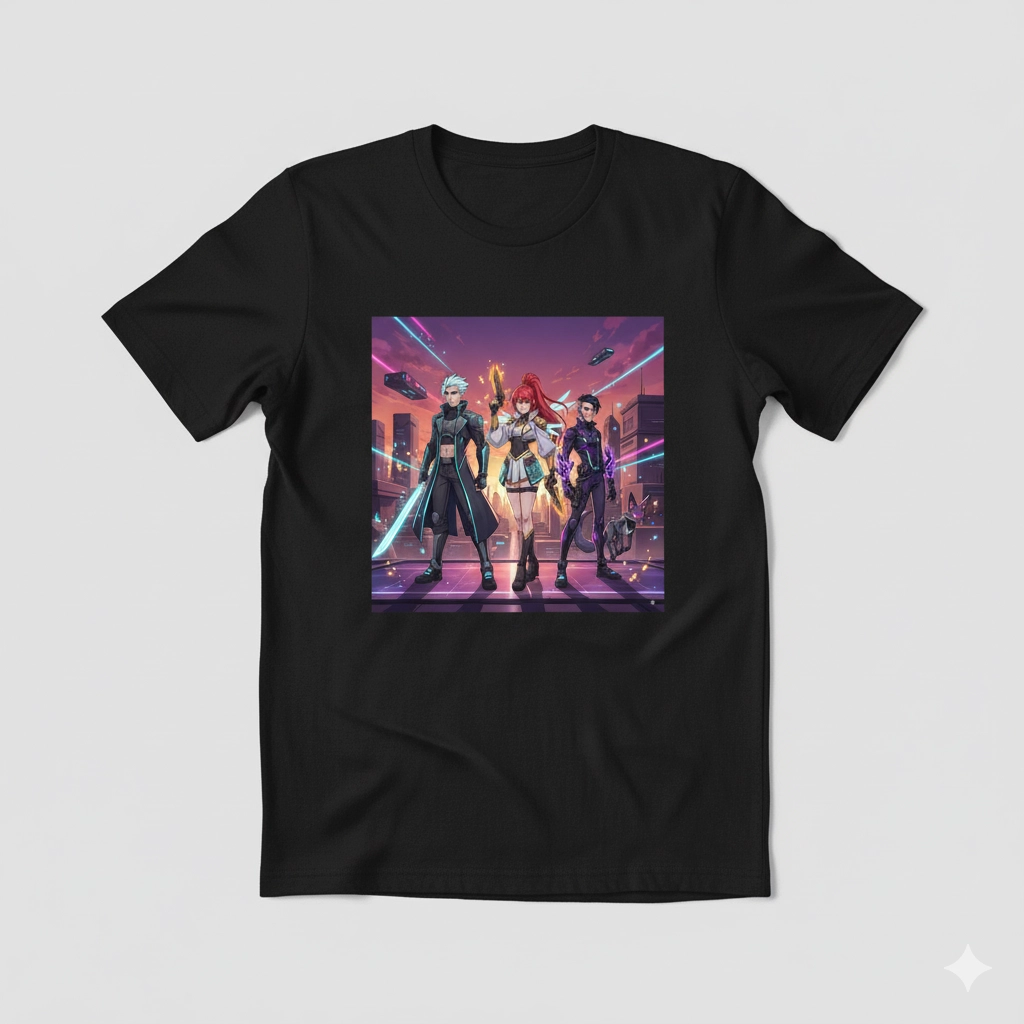 Fun, quirky, fan-favorite design featuring Mira, Rumi, and Zoey. Ideal for casual wear — lounge vibes meets idol style. A conversation piece with personality.